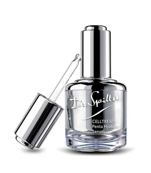 Содржината на хијалуронска киселина во кожата го одредува обемот и продирањето на влагата во кожата. Со зголемувањето на возраста, оваа вредност постојано се намалува и се појавуваат првите знаци на стареење на кожата како фини линии и брчки. CELLTRESOR Penta хијалуронскиот серум од Dr. Spiller ги надополнува резервите на влага на кожата, ја промовира структурата на кожата и обезбедува моментално измазнување.