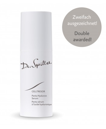 Содржината на хијалуронска киселина во кожата го одредува обемот и продирањето на влагата во кожата. Со зголемувањето на возраста, оваа вредност постојано се намалува и се појавуваат првите знаци на стареење на кожата како фини линии и брчки. CELLTRESOR Penta хијалуронскиот серум од Dr. Spiller ги надополнува резервите на влага на кожата, ја промовира структурата на кожата и обезбедува моментално измазнување.