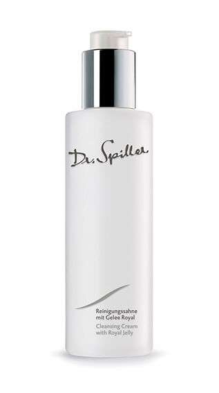 Користете го отстранувачот на шминка за очи Dr. Spiller за да ја отстраните шминката од очите, доколку е потребно. Нанесете рамномерно количество крем за чистење со матичен млеч со големина на лешник на лицето, вратот и деколтето, емулгирајте со навлажнети врвови на прстите и потоа отстранете го со млака вода. Завршете со тонирање на кожата со соодветен тонер за лице.